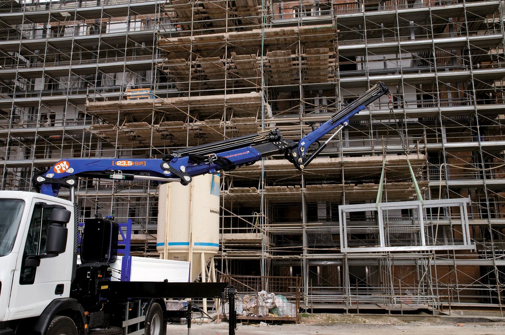 Belonging to the Gold line, the PM 23.5 SP Series combines lightweight design with considerable lifting power and reach. The exclusive linkage system ensures smooth lifting curves and high efficiency across all operating conditions. The Plus system boosts performance, while the PM Power Tronic electronic management system provides real-time crane monitoring. A 15° negative overstroke on the secondary boom allows precise load handling in complex environments.