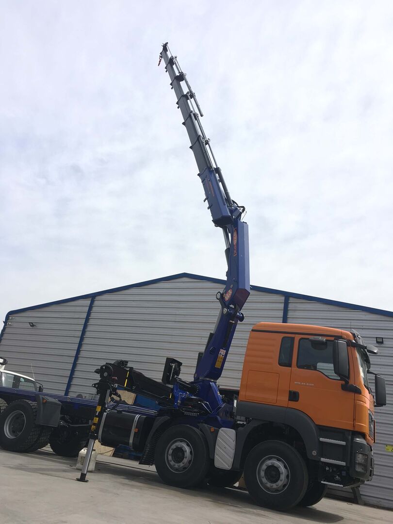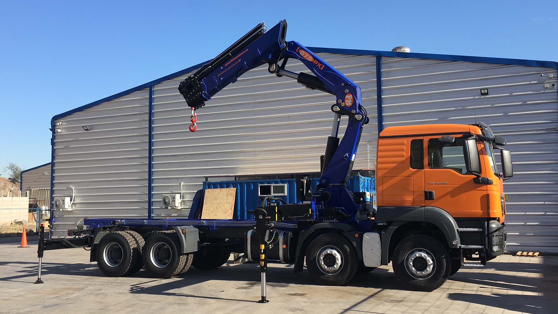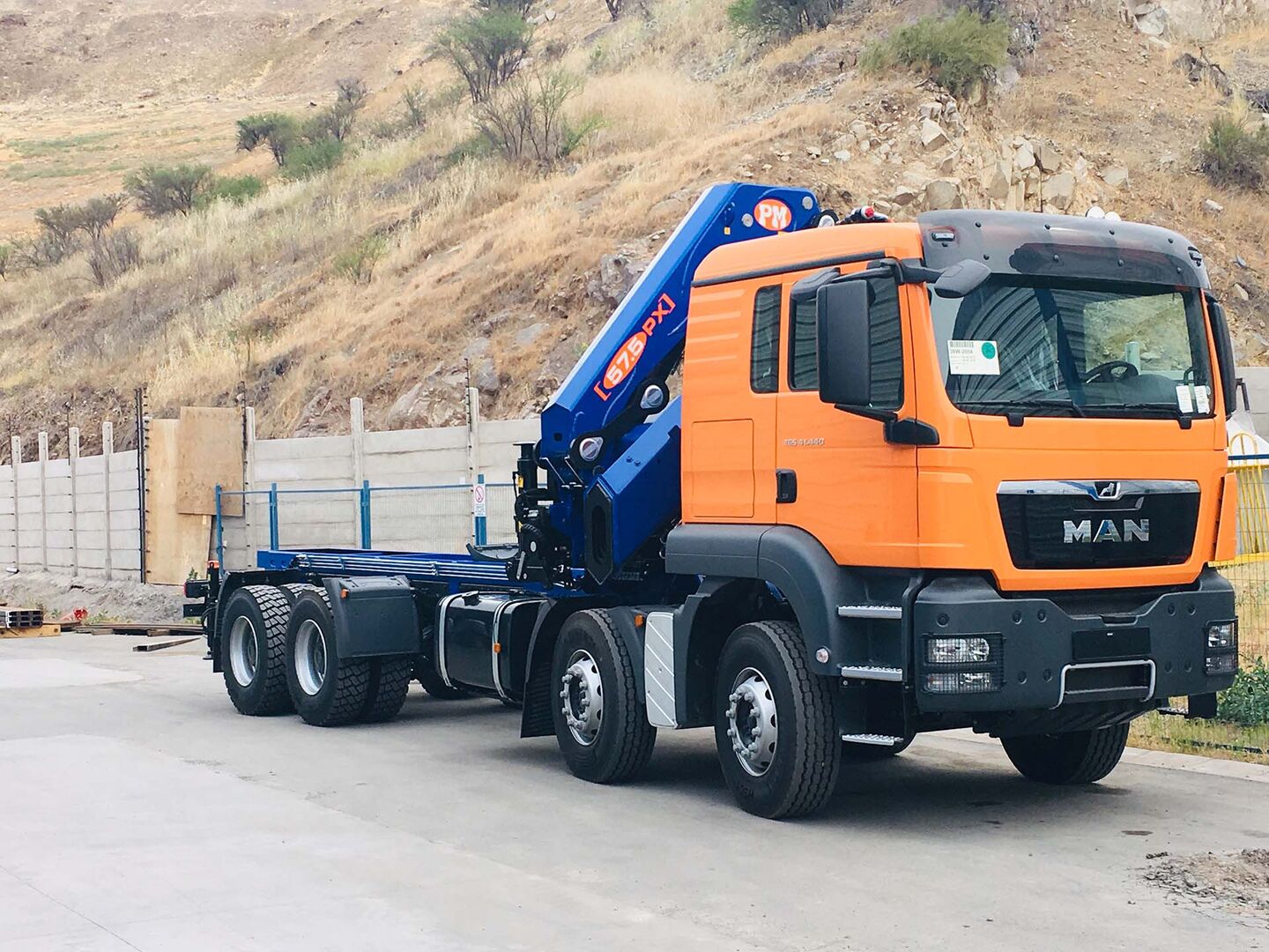 Depending on the configuration, the PM 57.5 PX reaches up to 15.4 m horizontally and 19.5 m vertically, with a maximum lifting moment of 43.9 tonne-meters. A slewing angle of 385° and torque of 62 kNm ensure reliable maneuverability, while stabilizer spreads between 6.6 and 8.0 m guarantee stability in all conditions. With a standard crane weight of around 5,515 kg, it is optimized for mounting on a wide range of trucks without compromising payload capacity.