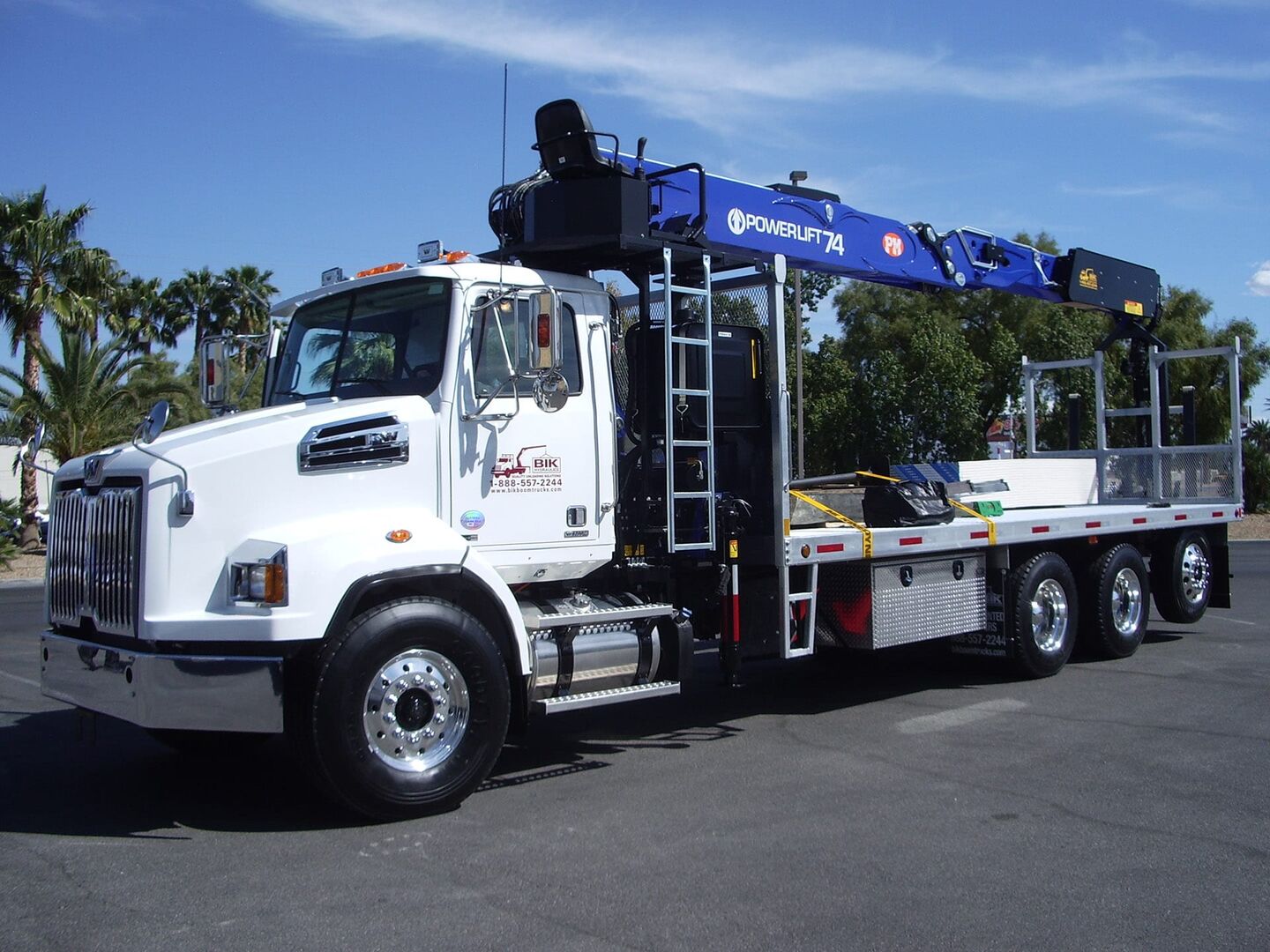 The Power Lift range has been designed and refined over more than 20 years of use by major U.S. distribution companies. It combines innovative design with advanced technology to deliver high performance, reliability, and ease of use. With a compact base and centered column, improved lifting geometry thanks to the Power Link system, and a robust hydraulic setup, these cranes provide fast, safe, and smooth movements.