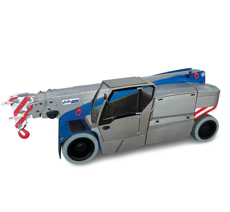 Built for heavy-duty lifting where space, safety, and environmental impact matter, the Valla V160RC combines a 16-ton capacity with fully electric operation and a protected, comfortable operator cab. Its compact design, rear steering, and remote-controlled driving make it ideal for precision work in confined or indoor areas.