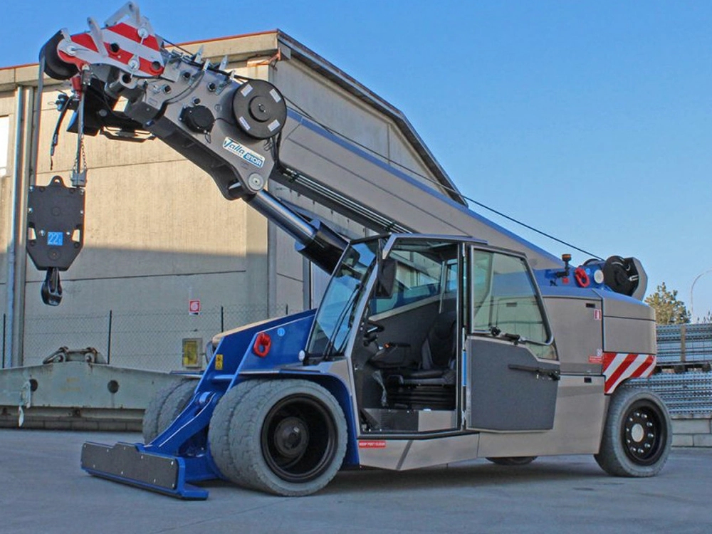 The Valla V210RC is a fully electric, high-capacity pick & carry crane with a closed cabin and radio remote control—built for zero-emission lifting in industrial environments where strength and operator comfort are equally essential.
