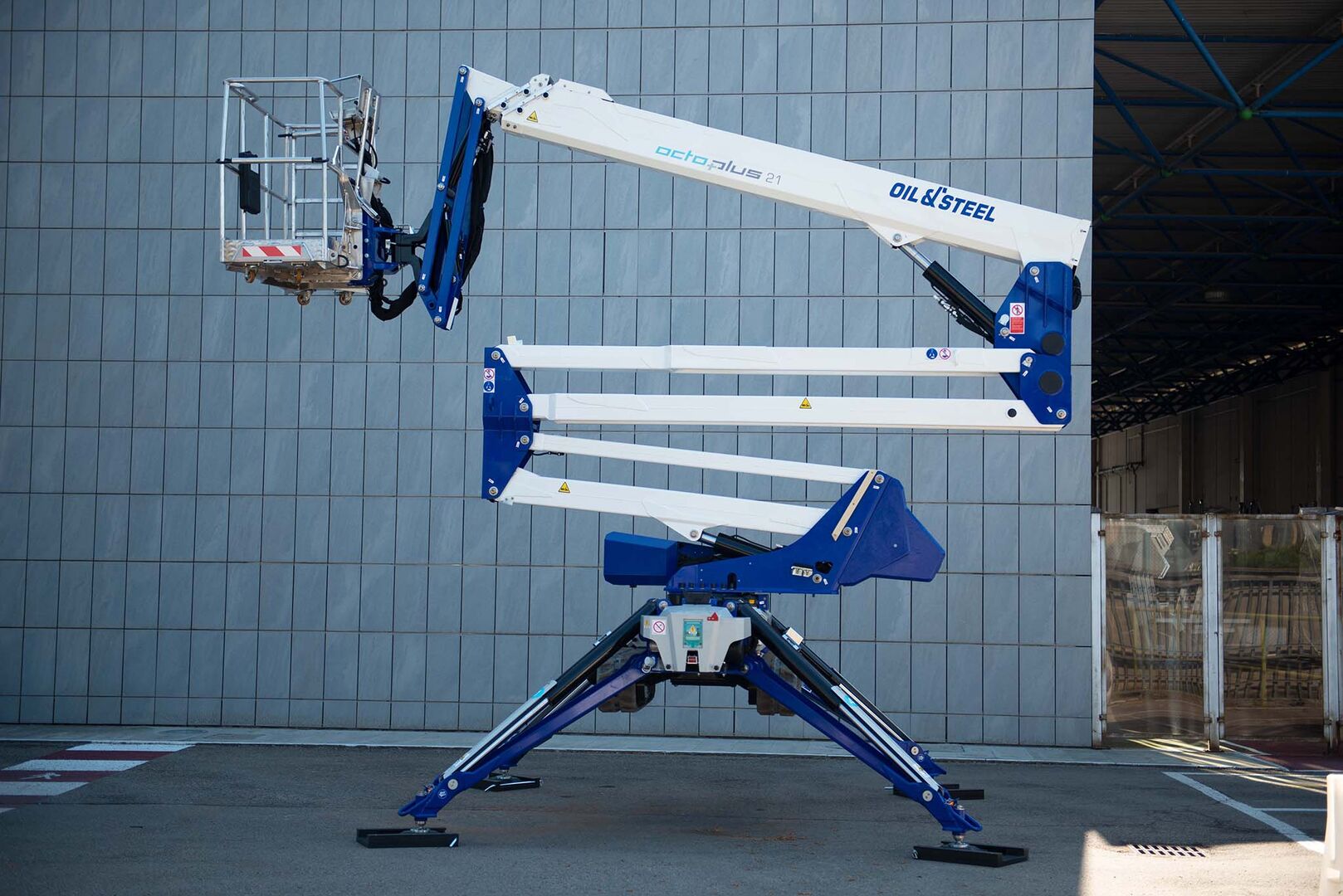 The Oil&Steel Octoplus 21 delivers professional-grade performance with a maximum working height of 20.7 meters, a horizontal outreach of 10.6 meters, and a 250 kg load capacity. With multiple load settings (150 kg single operator, 200–250 kg with two operators), it adapts seamlessly to different job requirements.