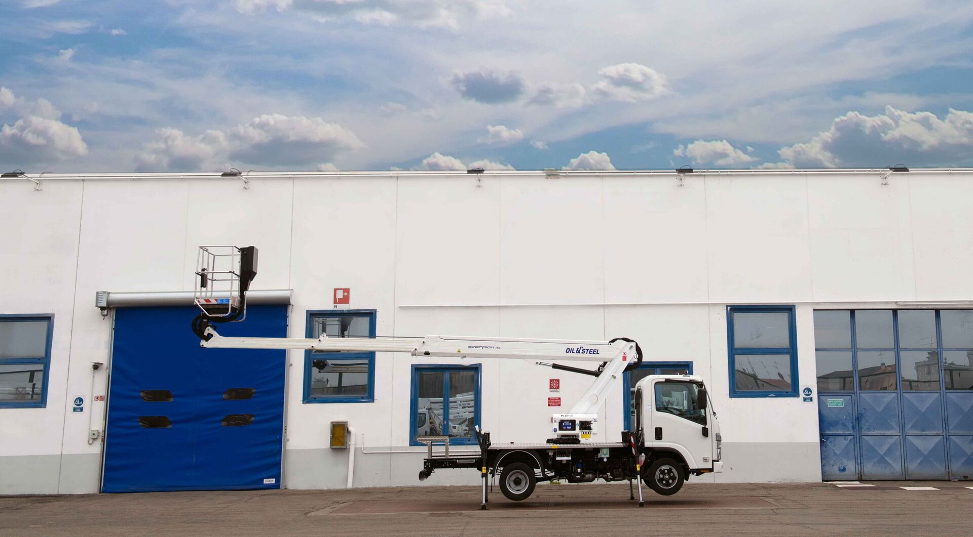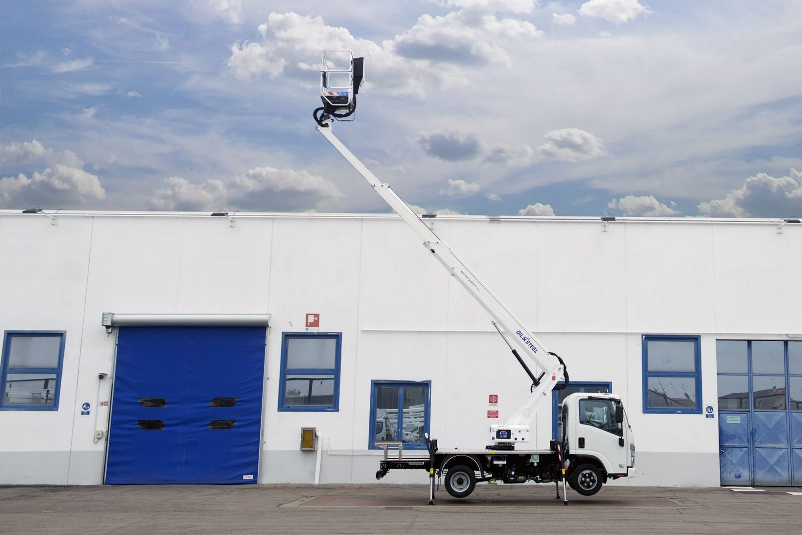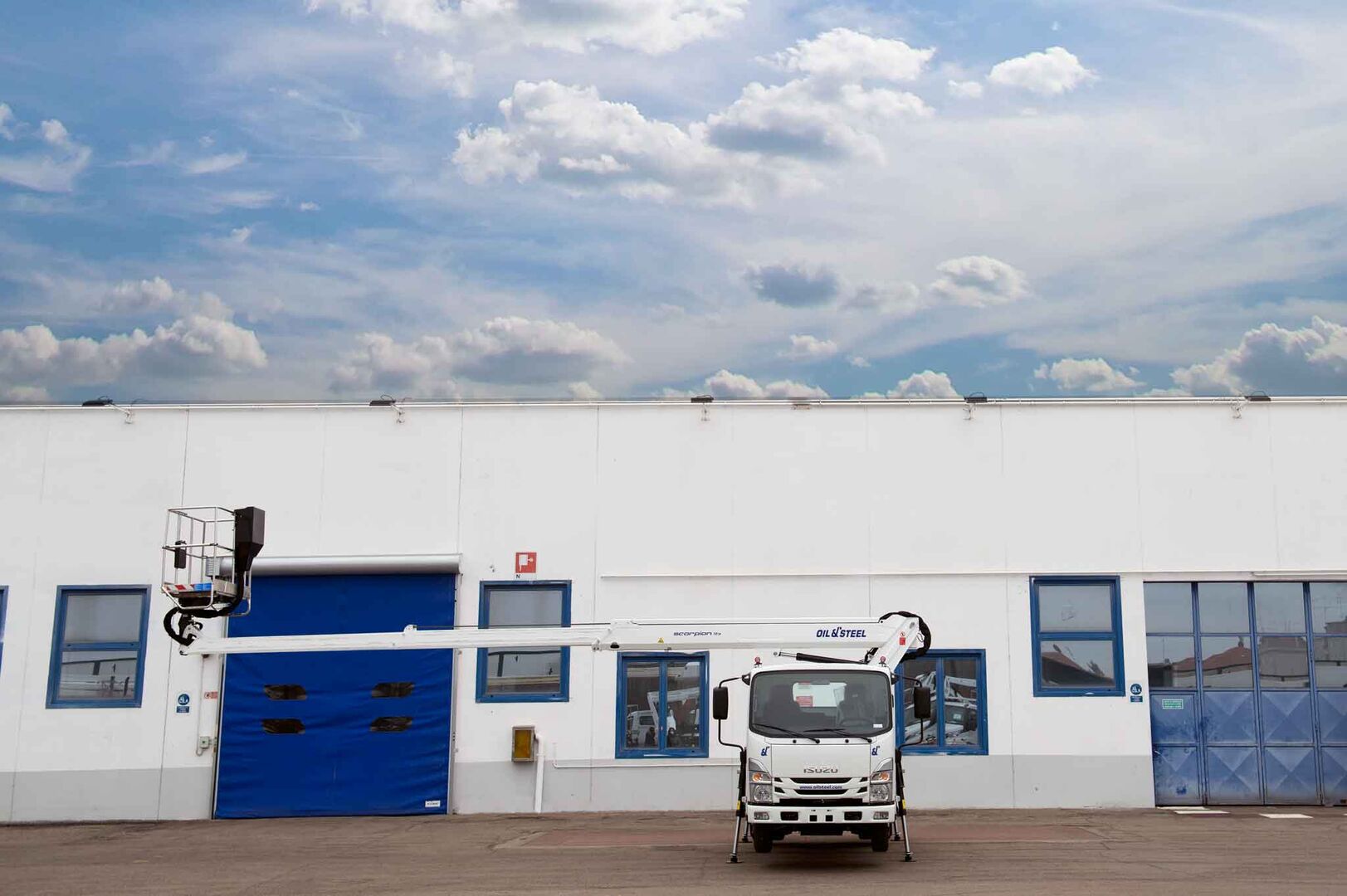 Mounted on the Isuzu M21T chassis, the Oil&Steel Scorpion 16 combines modern truck features with a reliable aerial platform for professional operators. It delivers a maximum working height of 16 meters, a horizontal outreach of 11.3 meters, and a 250 kg basket load capacity.