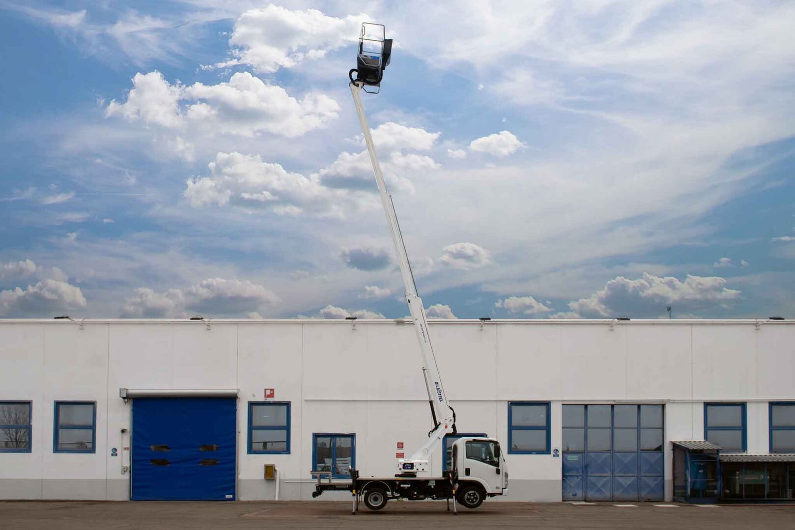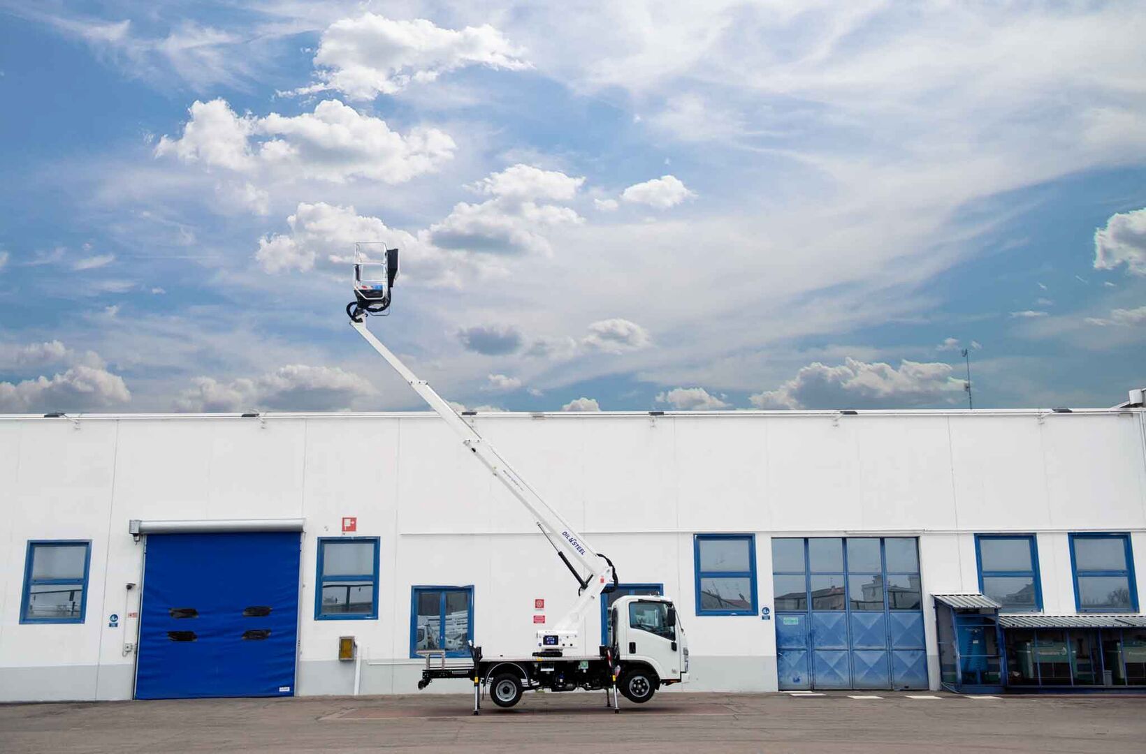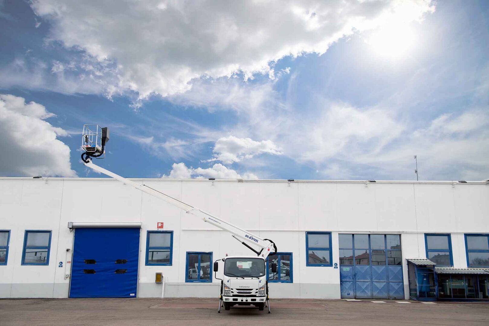 Mounted on the Isuzu M21T chassis, the Oil&Steel Scorpion 16 combines modern truck features with a reliable aerial platform for professional operators. It delivers a maximum working height of 16 meters, a horizontal outreach of 11.3 meters, and a 250 kg basket load capacity.