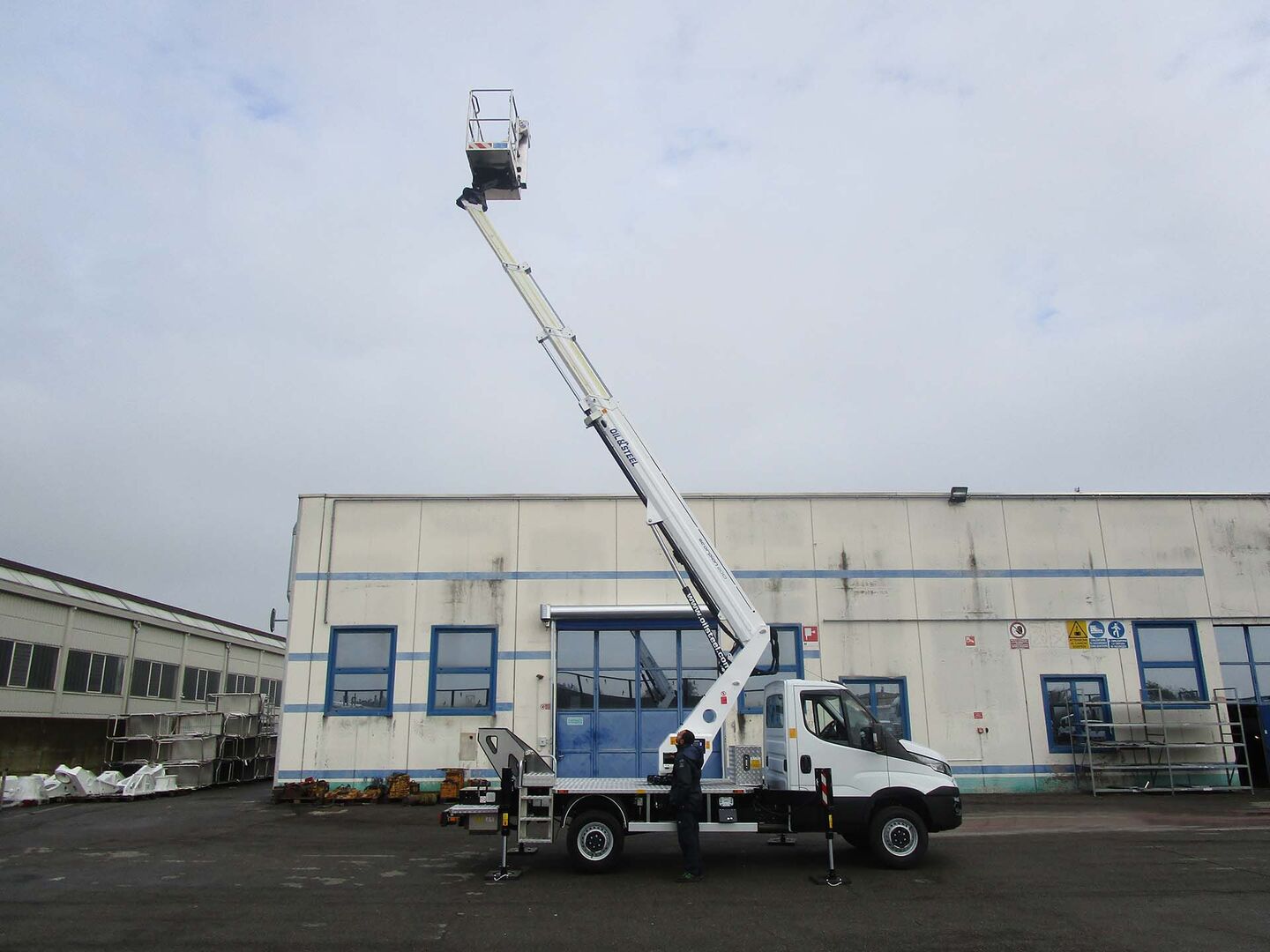 Mounted on the Iveco Daily 35S14H chassis, the Oil&Steel Scorpion 2013 combines robust truck performance with an advanced aerial platform. It provides a maximum working height of 19.9 meters, a horizontal outreach of 13.9 meters, and a 250 kg load capacity—making it ideal for utilities, rental fleets, and urban maintenance work.