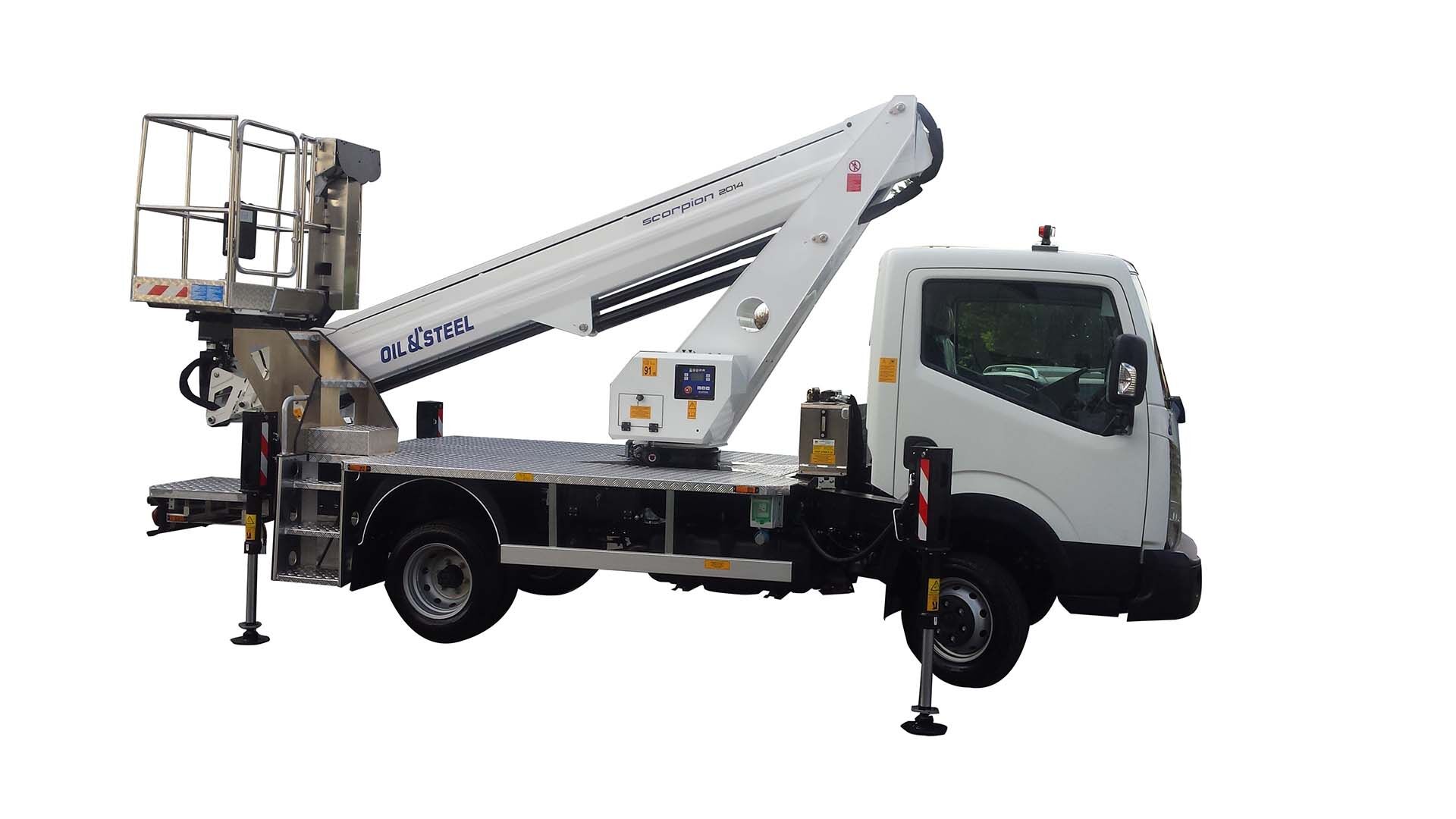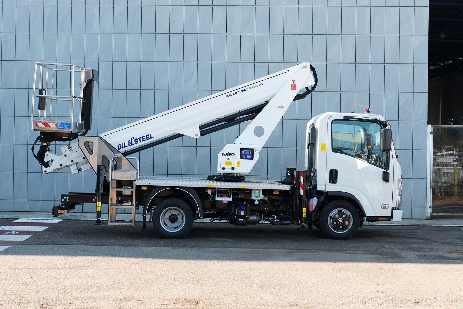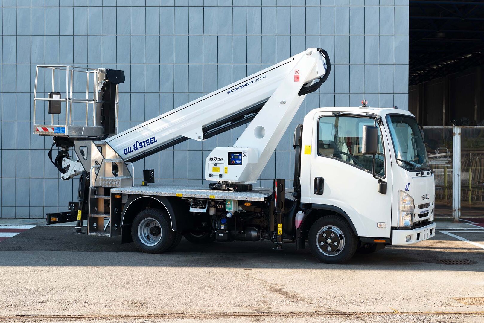 The Scorpion 2014 is a truck-mounted aerial platform that delivers nearly 20 meters of working height and outstanding outreach, all in a compact and reliable design mounted on the Isuzu M21 chassis.