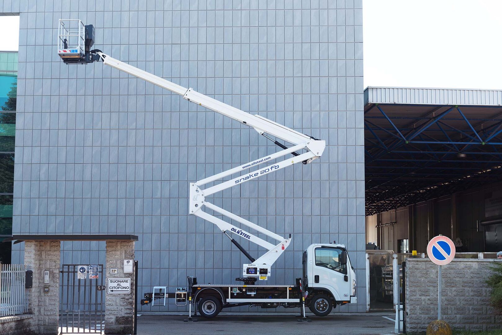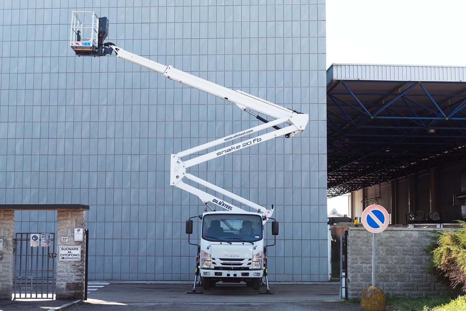 The Snake 20 FB combines compact dimensions with outstanding versatility, making it a highly reliable aerial platform for urban and industrial work.
