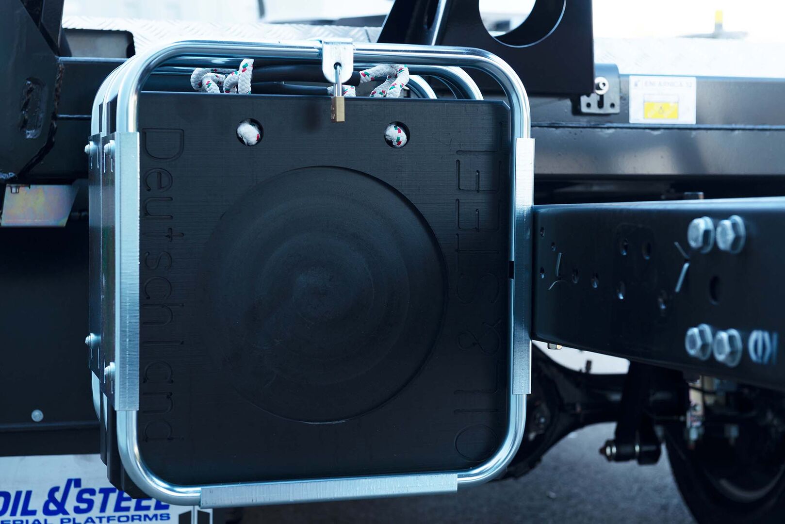 The platform comes equipped with a standard aluminum basket measuring 1.4 by 0.7 by 1.1 meters, with an optional fiberglass version available for electrical insulation up to 1 kV. Operators benefit from proportional hydraulic controls, which allow smooth and accurate maneuvering. The Snake 20 FB also integrates advanced features such as electro-hydraulic aerial and outrigger controls, an automatic PTO system with safety interlocks and dashboard indicators, and a moment detection and limiting system for added protection. Engine start and stop can be operated from both the basket and the column, and a manual emergency descent is possible through a hand pump. Additional safety elements include an anti-collision system between the cab and platform structure, stainless-steel fasteners, anti-slip aluminum decking, and a corrosion-resistant paint finish.