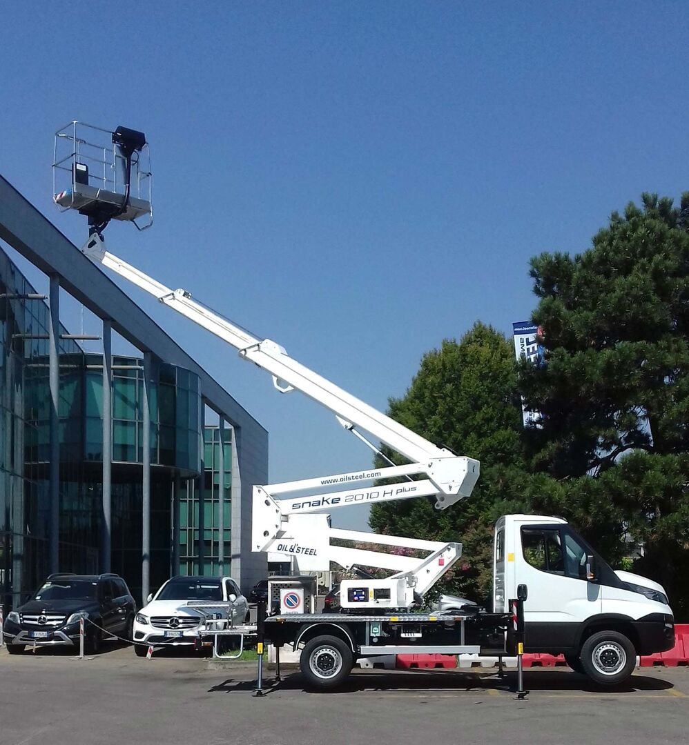 Mounted on the Iveco Daily 35S14H (136 HP, Euro VI), the Oil&Steel Snake 2010 H Plus provides a 20 m working height, a 10.2 m outreach, and a 250 kg basket capacity for two operators.