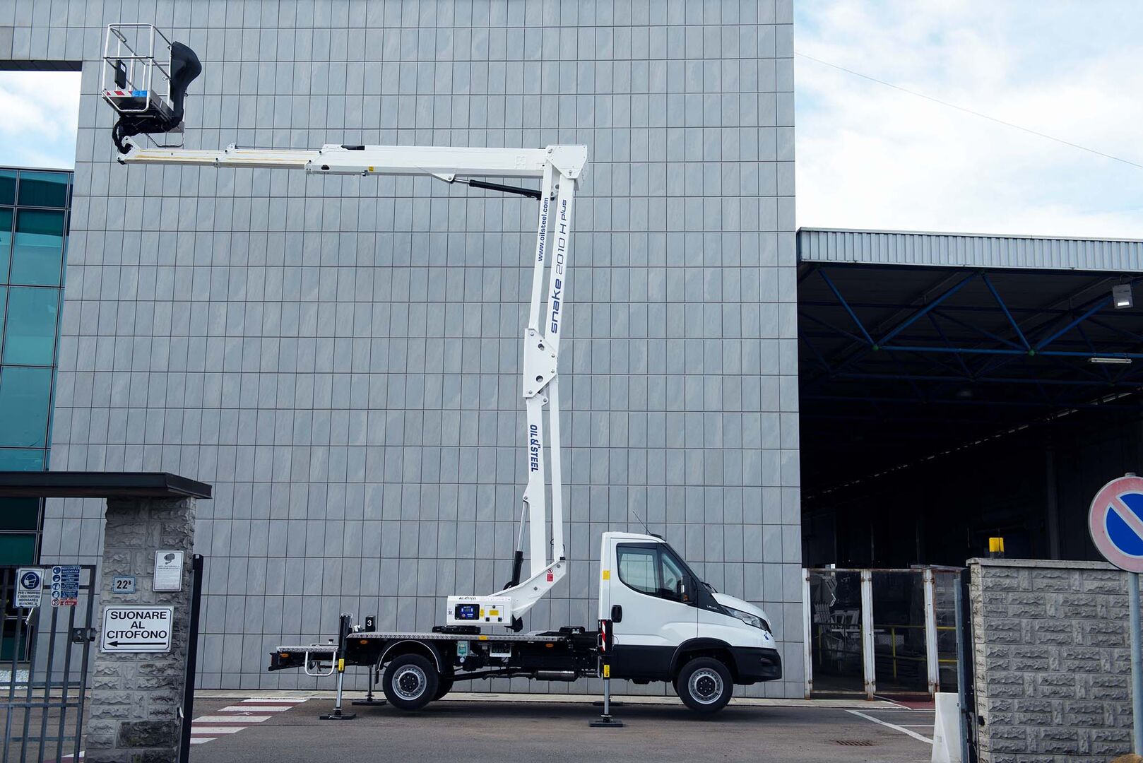 The Snake 2010 H Plus on Iveco offers robust strength and advanced safety features, making it the trusted solution for professional aerial work requiring reach, stability, and durability.