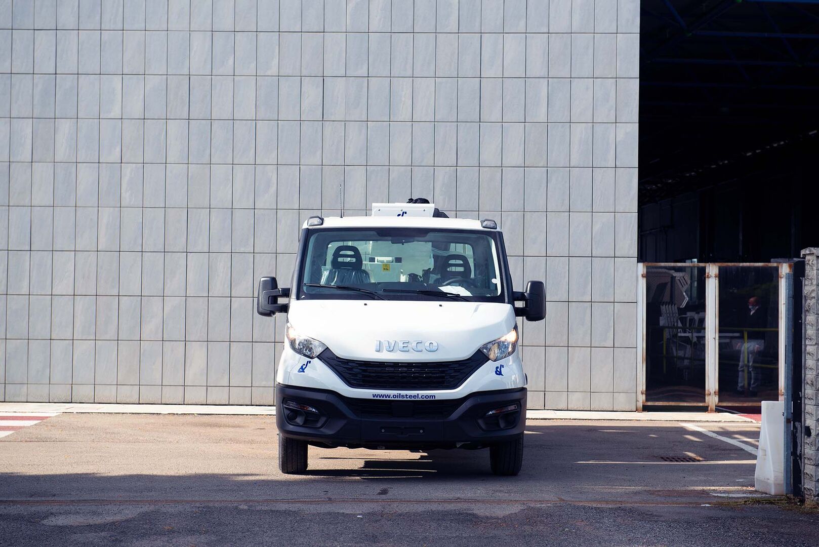 Standard truck features (Iveco Daily) include mechanical 6-speed gearbox, Euro VI F1A engine, power windows, central locking, driver safety systems, and a comfort-adjustable seat.