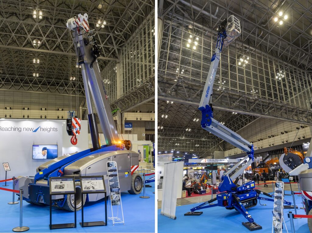 The Manitex Group joined the Tadano Group in January 2025; Tadano’s booth at CSPI-EXPO exhibited two of their products that are currently sold overseas and have yet to be released in Japan. One of them is Oil & Steel OctoPlus 21, hybrid self-propelled arial work platform. Like other models in the line, the OctoPlus 21 is equipped with double pantograph articulation, providing flexibility for movements unique this category including perfectly vertical ascent/descent.