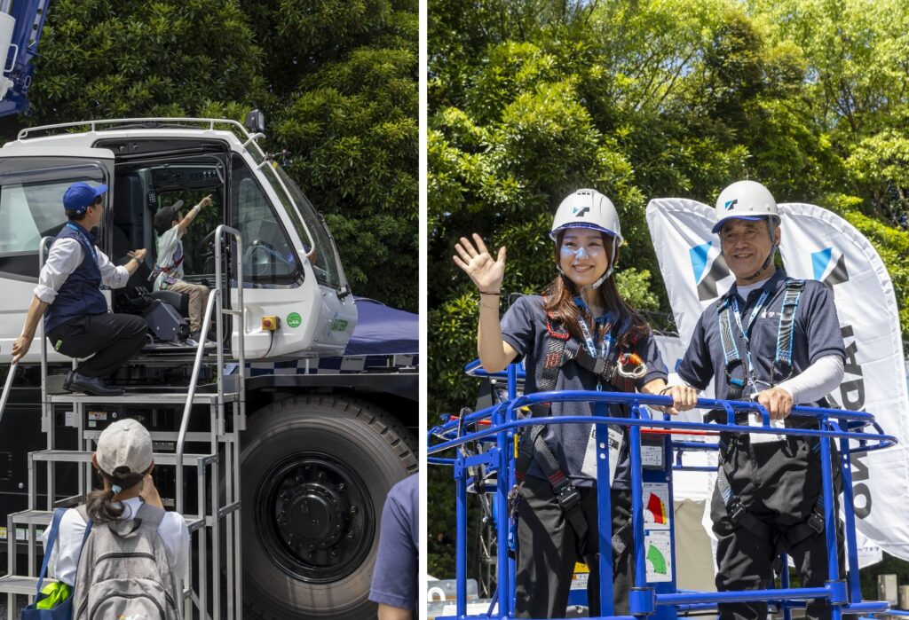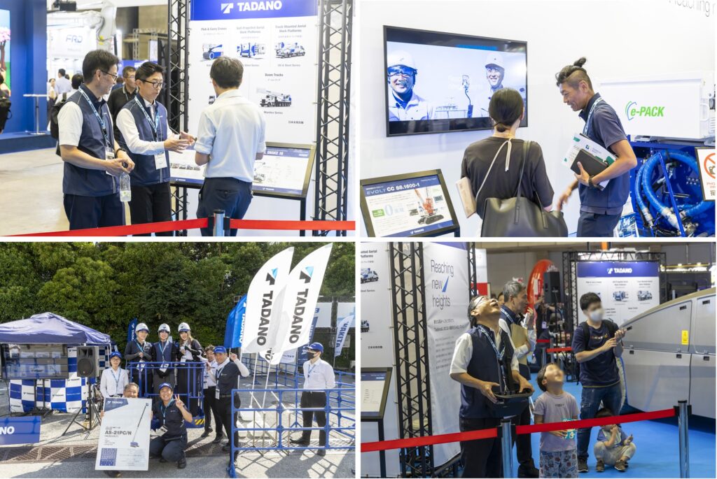 Dai Okajima, Manager of the Public Relations and Publicity Group for Tadano Ltd., said “The booth was more successful than last year, and we were able to promote our company’s current situation (business expansion, advanced technology, environmental initiatives, etc.) to a wide range of generations, including the general public. The high motivation and responsible involvement shown by the approximately 150 Tadano staff and vendors in total was a major achievement, and we believe it was this that led to the success of this event”.